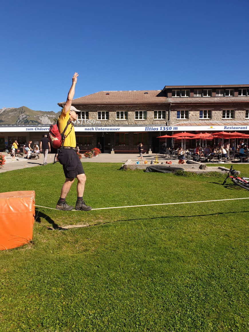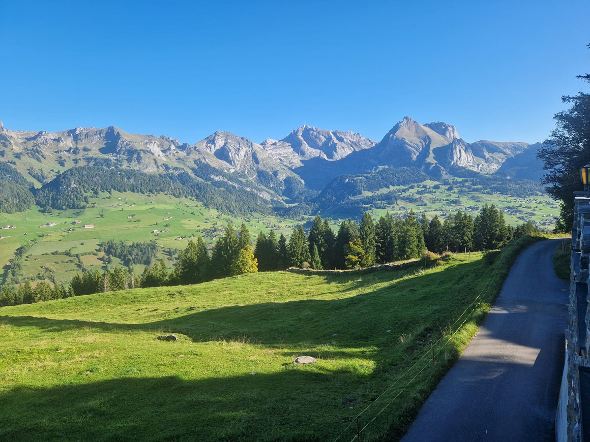 Bei schönstem Herbstwetter ging unsere diesjährige Turnfahrt ins Toggenburg nach Alt St. Johann. Organisiert hatte sie Alois, der leider aus gesundheitlichen Gründen kurzfristig absagen musste. So hat Köbi die Leitung übernommen. Mit seinem Bus chauffierte er uns 8 Turnerinnen und Turner nach Alt St. Johann. Mit der Seilbahn fuhren wir hinauf zur Sellamatt. Wer Glück hatte, erwischte eine geschlossene Kabine. Die Kurzhosigen hatten dieses Glück leider nicht. Der herrliche Ausblick auf die Berge mit dem ganzen Panorama und dem Säntismassiv war beeindruckend und durch die Föhnlage zum Greifen nah. Die Sicht war durch kein Wölklein getrübt und diesen Blick wollten wir ausgiebig bei einer ersten Rast auf der Terrasse des Restaurants Sellamatt geniessen.